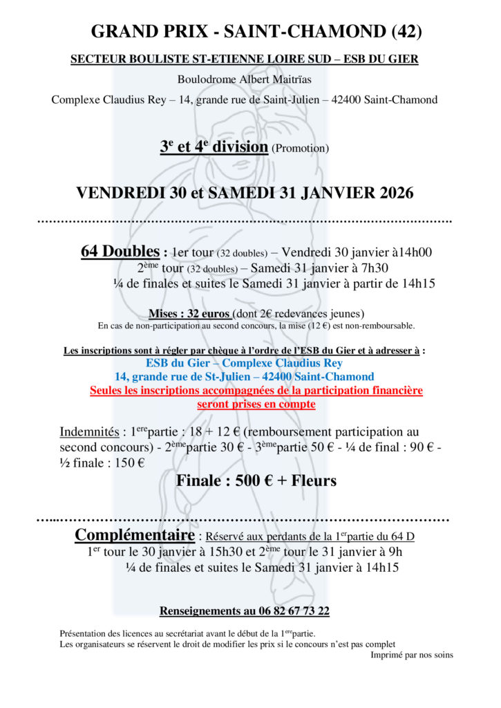 64 doubles 3&4 – 30 et 31 janvier 2026